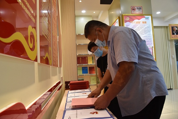 指導組一行現(xiàn)場查閱相關(guān)材料。吳思敏
